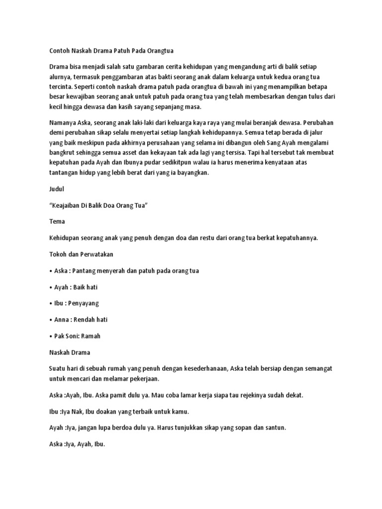 Contoh Naskah Drama Patuh Pada Orangtua Pdf